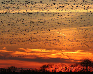There were supposed to be some cloudy skies today so I went out to Bombay Hook hoping for a nice red sunset like we’ve been having for the last few days. I didn’t necessarily expect the snow geese to be moving around. One of my goals is to be there in the afternoon one time when they all jump up and have a blue and white extravaganza. Anyways, right as the sun was going down, they came in for the night, by the thousands. It was spectacular. They sounded like a jet was coming towards me. I was flashing back to the Alfred Hitchcock movie, “The Birds”.