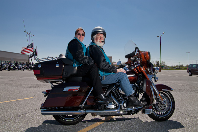 They were game and we had some fun moving their bike to an area with a little less background clutter. I asked their friend to act as a voice activated light stand and got this image with a little off camera flash action. The Motor Cycle is a 2011 Harley Davidson Ultra Classic Limited, Light & Dark Root Beer in color W/ Metal Flake Paint.