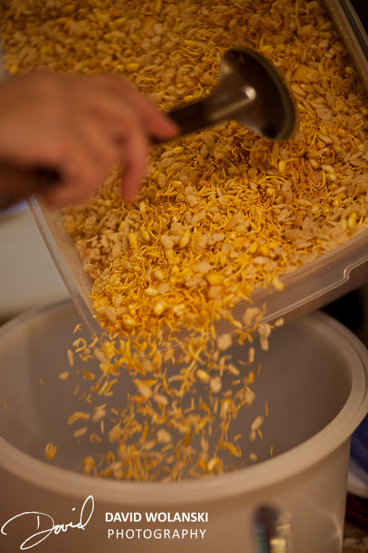 Edited to add (Kanchan corrected my spelling in the comments, thanks Kanchan!) My good friends the Nadkarny’s introduced me to Bale Behl many years ago. Kanchan makes it as a treat for her picnics or brings the stuff to ours. OMG it’s great. Kanchan says they serve this in the streets of India as a snack food. Basically it’s a kind of Puffed Rice salad. In the past Kanchan used Rice Krispies to make it as the authentic Indian style puffed rice isn’t readily available here in the states. She told me that the Indian food store now carries ready made puffed rice with Thin Sev and some kind of tortilla like cracker already in there.