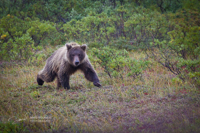 We were in a tour bus In Denali a few days after the first photo on a drizzly day, watching this bear and it’s partner eat berries for 10 or 15 minutes. He decided to follow his partner who had already moved to the other side of the road. Look at those claws!