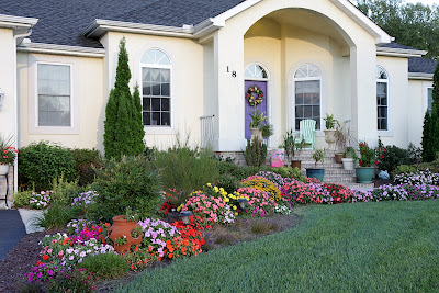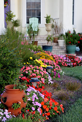 The house up the street is beautiful. It’s set on the lot so that when you come around the corner it faces the street just so. The owners have done a fabulous job with the plantings! That purple door is one of James Madison University school colors. The owner’s son just started at JMU this year. I liked the door better as red, but, with the flowers and stuff, what the heck!