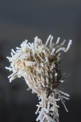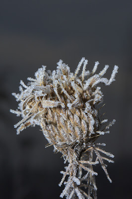 Here are some shots of frost laden thistle out at Bombay Hook. I shot them with a flash in full morning sunlight.