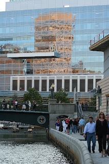 We went to Providence RI for the Waterfire event. It was interesting, and kind of strange. Some of my random thoughts and impressions: Providence spent around 140 million bucks to rearrange and resurrect some rivers in downtown to set up the waterfire shows. Massive building downtown has also occurred so I guess it was worth spending public funds to “fix” the river(s). The start of the event has some boats moving upstream carrying lots of folks dressed in black, while Lord of the Ringsish (there I go makin up words again) sounding music is played. It has a medevil, evil tone to it… kind of strange. The music kind of changes and the boats light the braziers up and down the river. The smoke fills the air with a smell that is a cross between wood and kerosene, though it’s not overwhelming. The heat from the fires is noticable on the riverwalk area, even in the summer.