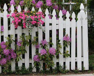 I’m working on a project, taking photographs of interesting fences. I took a neat one a while back, and read an article recently that suggested having a project that interests you. Fences are interesting, they make good neighbors, keep others out and owners in. I was driving downtown and saw the white fence with flowers on them, something I hadn’t noticed before. I like the middle photo best of the white fence shots.